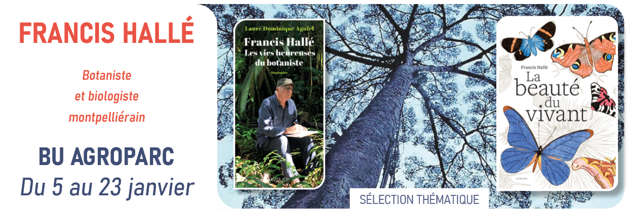 Aussi, la BU Agroparc vous propose une sélection thématique autour des principaux ouvrages de Francis Hallé dont son dernier livre, intitulé « La beauté du vivant », comme une synthèse de sa carrière scientifique engagé.