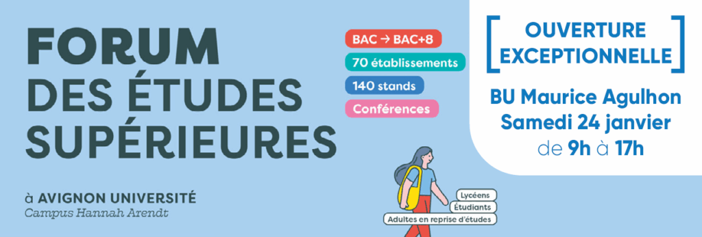 A l’occasion du forum des études supérieures, la BU Maurice Agulhon vous accueille le samedi 24 janvier de 9h à 17h.