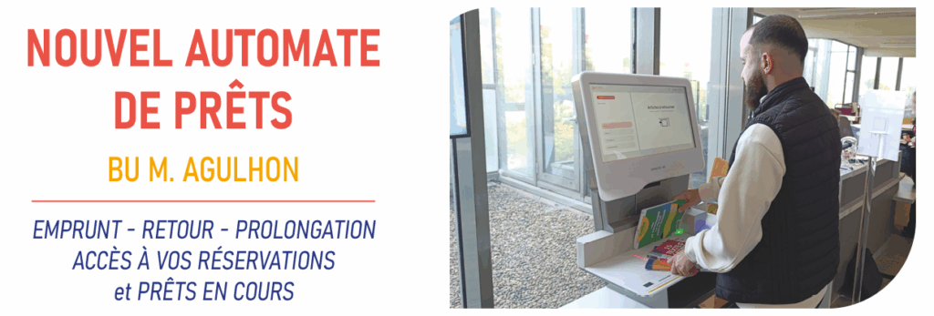 Désormais disponible à la BU Maurice Agulhon, l’automate de prêt vous permet d’emprunter, rendre et prolonger vos documents en toute autonomie, sans passer par l’accueil.