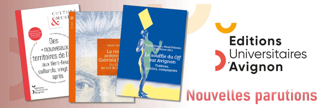 En juillet 2025 paraissaient deux ouvrages aux Éditions universitaires d’Avignon : « Le souffle du Off sur Avignon. Théâtres, publics, compagnies », sous la direction d’Émilie Pamart, Maud Pélissier et Paul Rasse ; et « La route ardente de Gabriela Mistral. Du Chili au sud de la France », de Benoît Santini.