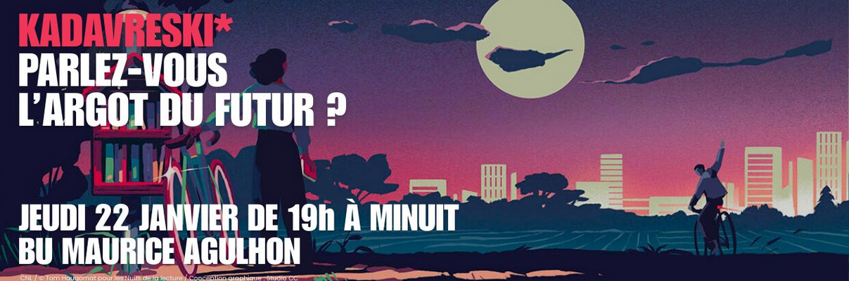 Le jeudi 22 janvier, Avignon Université vous invite à la Bibliothèque universitaire Maurice Agulhon pour la Nuit de la lecture, intitulée KADRAVESKI* : Parlez-vous l’argot du futur ? Jargons, patois et autres parlers populaires.