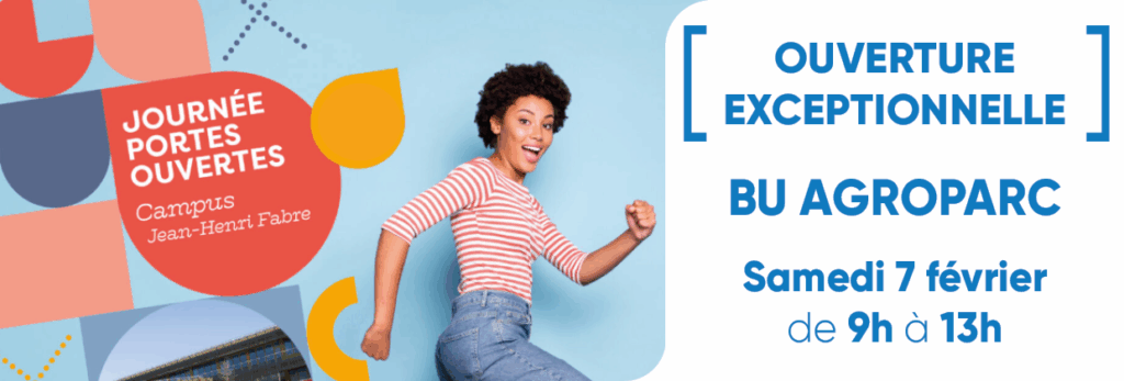 A l’occasion des journées portes ouvertes du campus Jean-Henri Fabre, la BU Agroparc vous accueille le samedi 7 février de 9h à 13h.