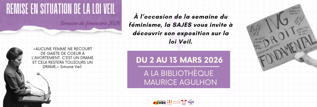 Cette exposition temporaire est proposée en partenariat avec la Bibliothèque Universitaire durant la Semaine du féminisme et puis de la lutte contre les discriminations du 2 au 13 mars 2026, ayant pour but de faire valoir la cause féministe au sein de l’Université. Durant la lecture de celle-ci vous aborderez le cheminement du combat de Simone Veil devant le Parlement pour l’accès à l’IVG en 1975, mais aussi les évolutions qui ont suivi permettant in fine d’inscrire ce droit dans la Constitution française en Mars 2024.